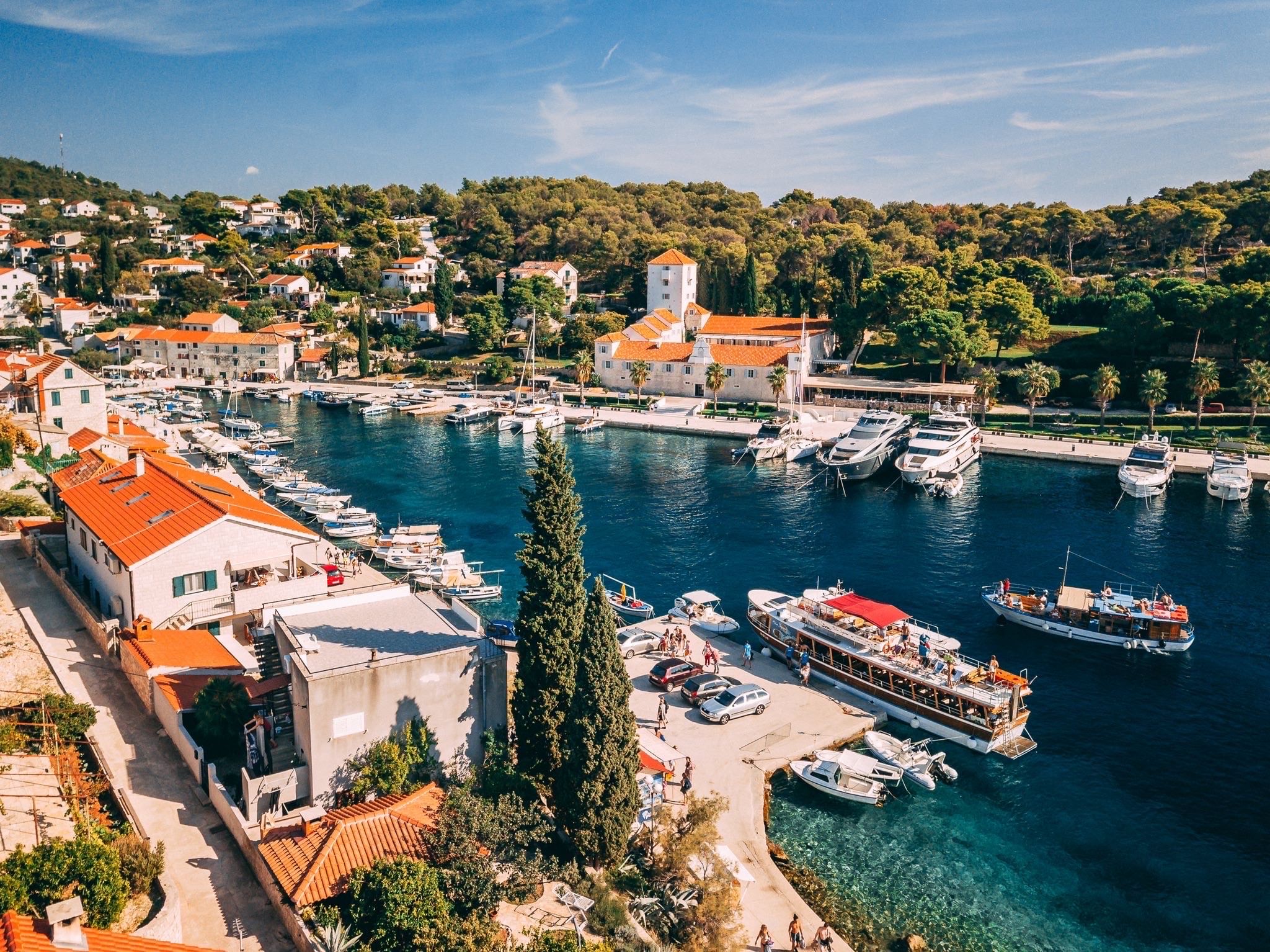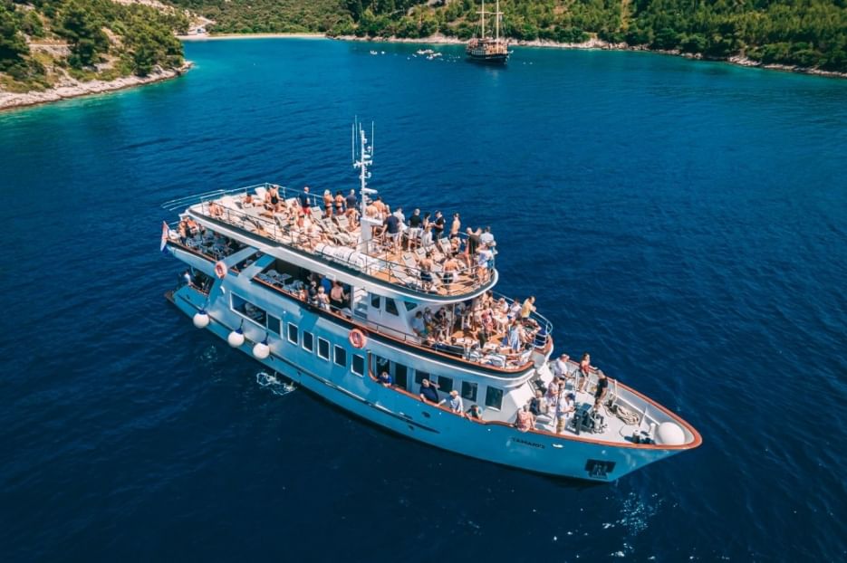 Explore the gems of Split and its surrounding islands on board a motor yacht Tamaris. Cruise to the Shipwreck in Nečujam Bay, Maslinica on Island Šolta, and Blue Lagoon on Drvenik Veliki Island. Enjoy a complimentary coffee and croissant on board, and have lunch at the restaurant in the Blue Lagoon. Board Tamaris, a 27-meter day cruiser on 3 decks: 2 air-conditioned salons, a spacious open deck with a fully equipped bar, and a sundeck. Relax with all of the comforts aboard the boat, equipped with 4 toilets, showers & professional Wi-Fi system. Start your day with a coffee and croissant served while cruising towards Nečujam, where you can snorkel over a shipwreck. Grab included snorkeling gear and explore the underwater life. After Nečujam, cruise to Maslinica on Island Šolta, a small fisherman village where you can enjoy the island's easygoing lifestyle, enjoy freshly brewed coffee in one of the local cafeterias, and explore Marchi Castle with its beautiful park. Arrive at the Blue Lagoon, the last stop of the day, a turquoise bay with crystal clear sea. Be served with lunch in a private restaurant on the beach, followed by free time to explore the beauties of the Blue Lagoon. Sip cocktails while you catch sun rays, take a walk around to explore the bay, swim in the crystal-clear sea, or simply relax in the shade of a 100-year-old pine tree forest.